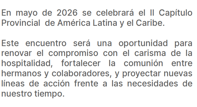Orden Hospitalaria San Juan de Dios Región Latino América y el Caribe – 2023 © Todos los derechos reservados