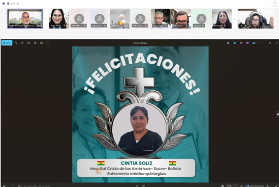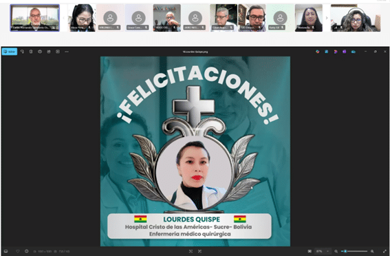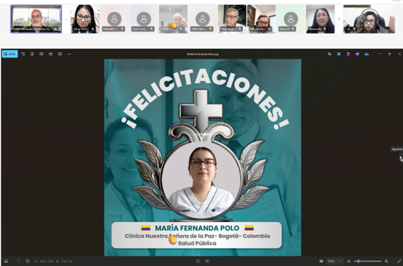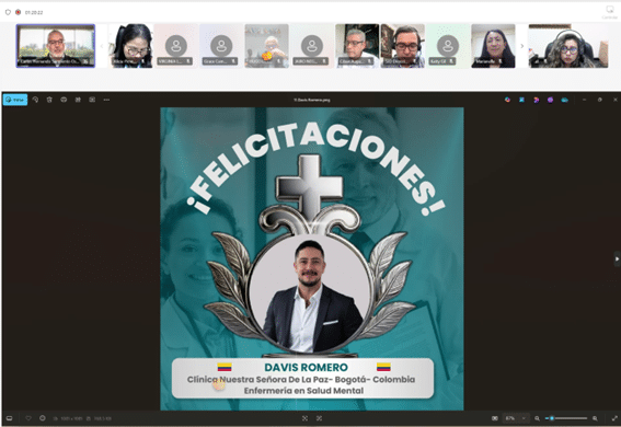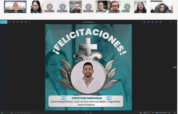 personal sanitario; motivando a los presente a postularse y empezar este camino de crecimiento profesional que la Orden Hospitalaria promueve. Por su parte, el Dr. Jonathan Irreño, gestor de conocimiento de la Clínica Nuestra Señora de la Paz (Bogotá – Colombia), destacó el impacto de estas becas en la mejora de los procesos de calidad, la toma de decisiones y el fortalecimiento del cuidado hacia los pacientes, resaltando que estas iniciativas transforman no solo a los profesionales, sino también a las familias y a los centros.
