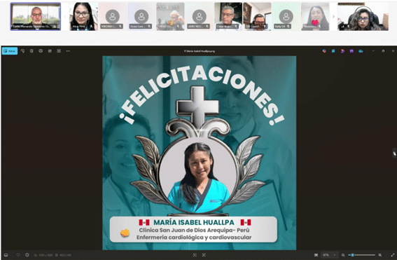 Huamán, Coordinadora Médica de Hospitales Generales de la Provincia, quien expresó su agradecimiento a los participantes y resaltó la importancia de estos espacios que fortalecen el conocimiento y la vocación de servicio en la institución. Seguidamente, el Hno. César Arroyo, OH., en representación del Hno. Erik Castillo, OH. – Superior Provincial, dirigió un emotivo y reflexivo mensaje de reconocimiento a los participantes, destacando que la misión de San Juan de Dios se proyecta ante la sociedad a través del bien que realizan sus profesionales. Asimismo, señaló que estos logros no son casualidad, sino fruto del compromiso y de una obra que responde al propósito de Dios.